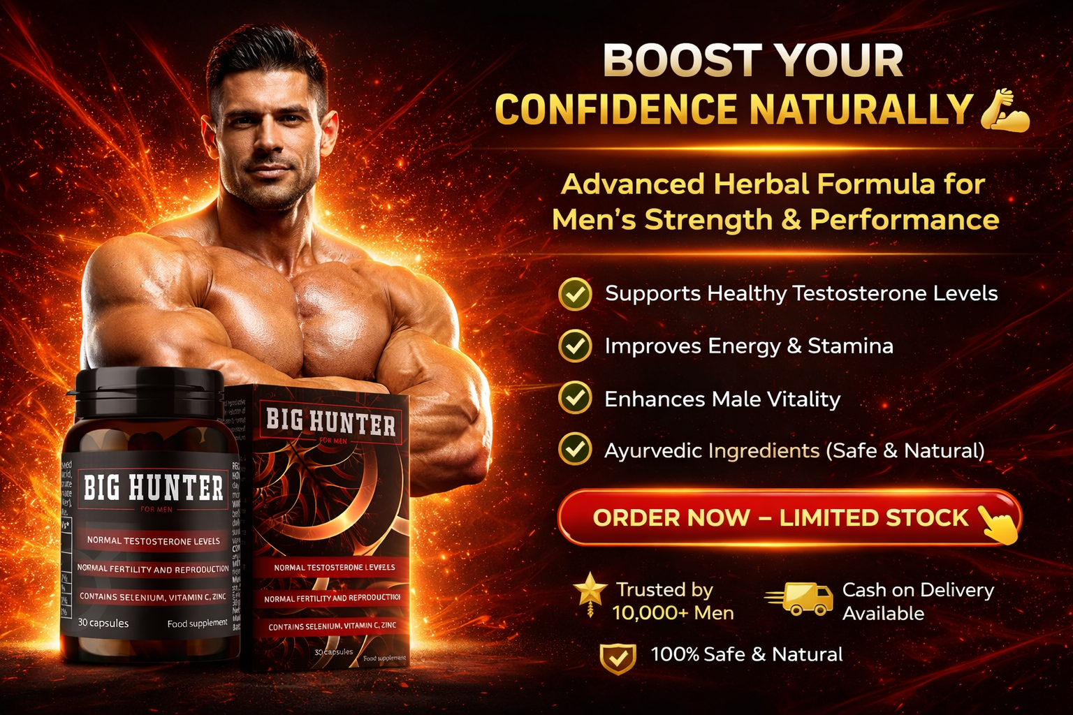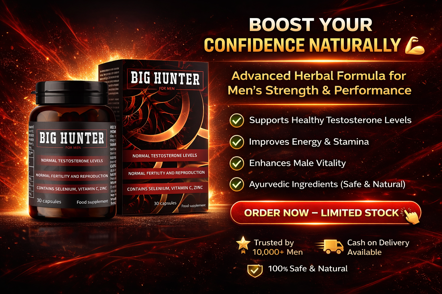 ""सबसे पहले तो शक था, लेकिन बिग हंटर फॉर मेन 3 हफ्ते तक रोज 2 कैप्सूल दूध के साथ लेने के बाद मेरी एनर्जी लेवल बहुत बढ़ गई। ऑफिस के बाद थकान नहीं होती और बेड पर परफॉर्मेंस काफी बेहतर हो गई है – इरेक्शन मजबूत और स्टैमिना बढ़ा। पत्नी को भी फर्क महसूस हुआ! पूरी तरह नेचुरल, कोई साइड इफेक्ट नहीं। पैसे के हिसाब से बेस्ट। 40+ उम्र के पुरुषों के लिए हाईली रेकमेंड!""